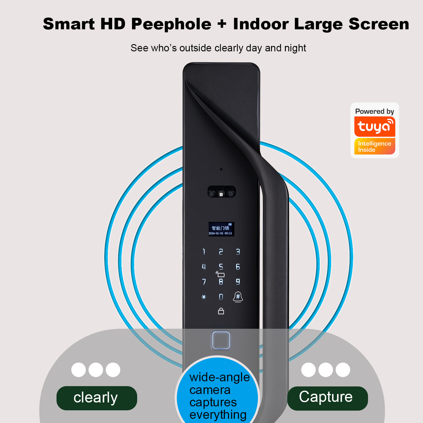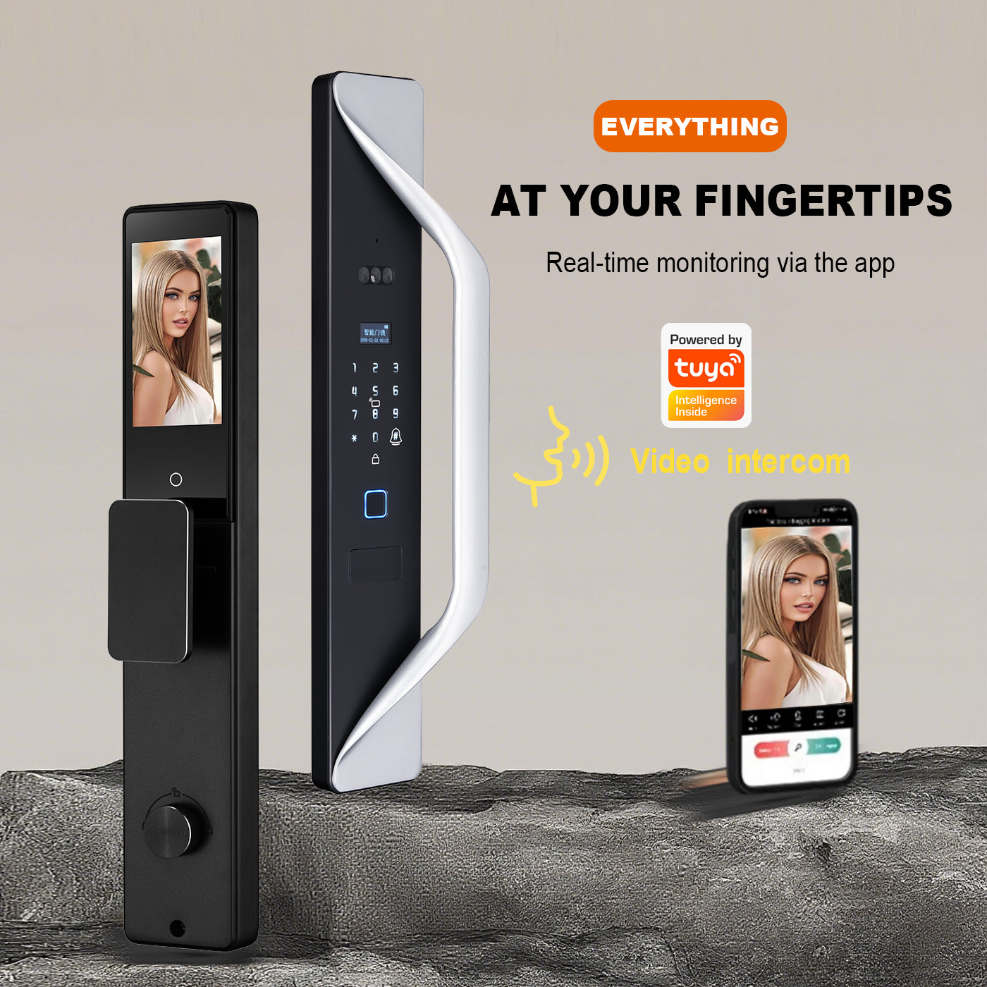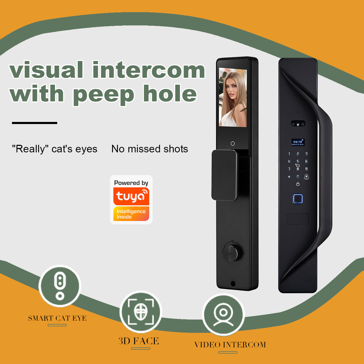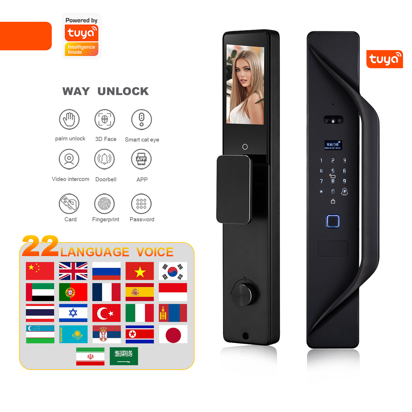 Tuya Digital Door Lock, multi-language smart lock, 3D security video intercom, keyless WiFi smart lock with fingerprint and face recognition