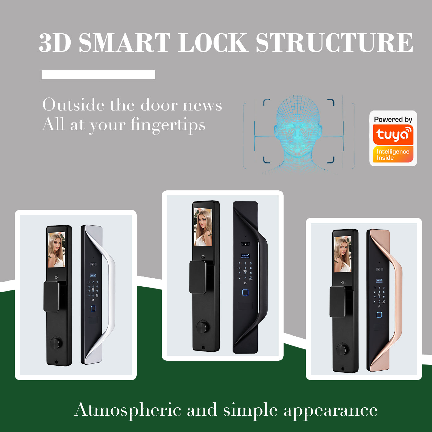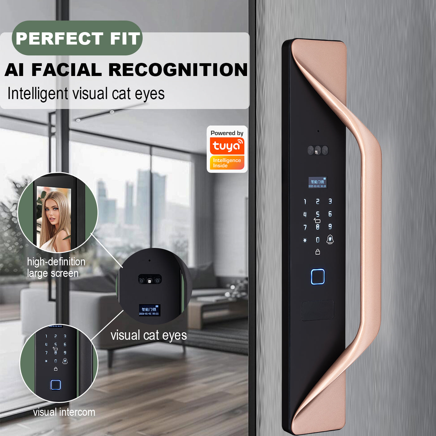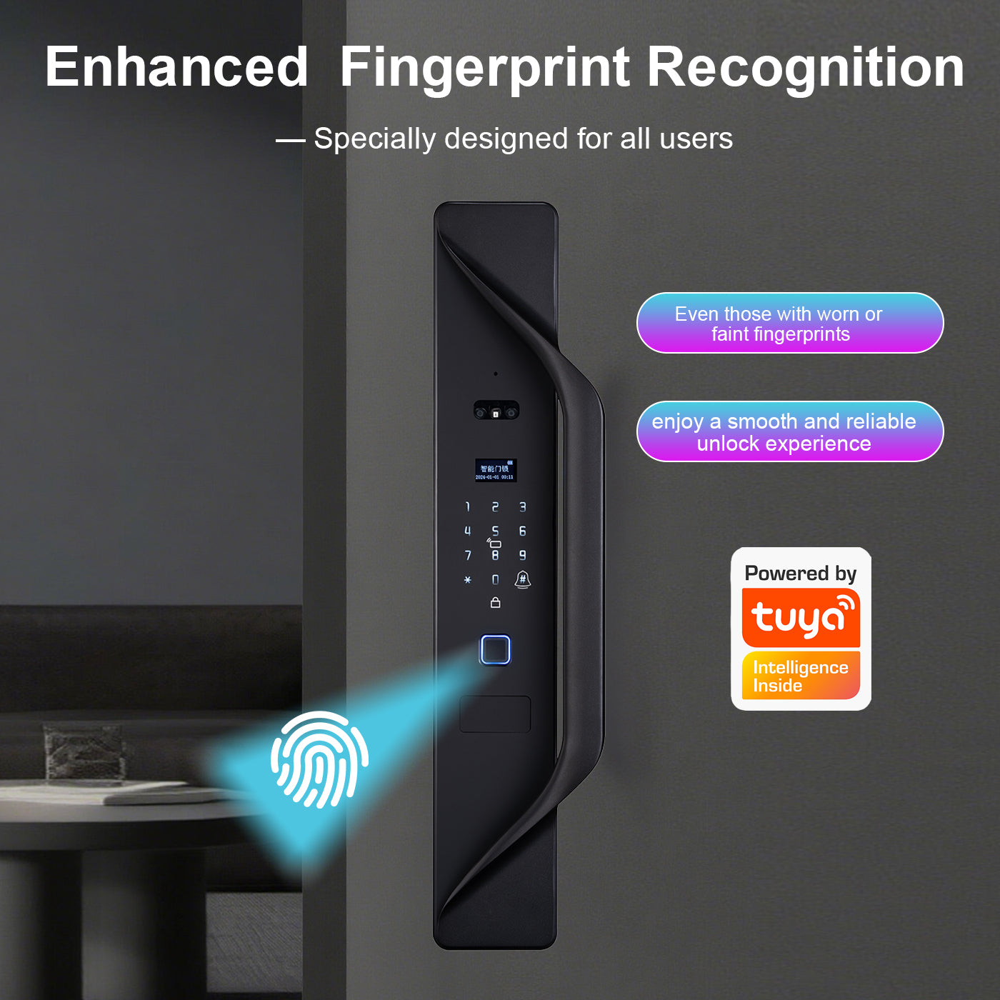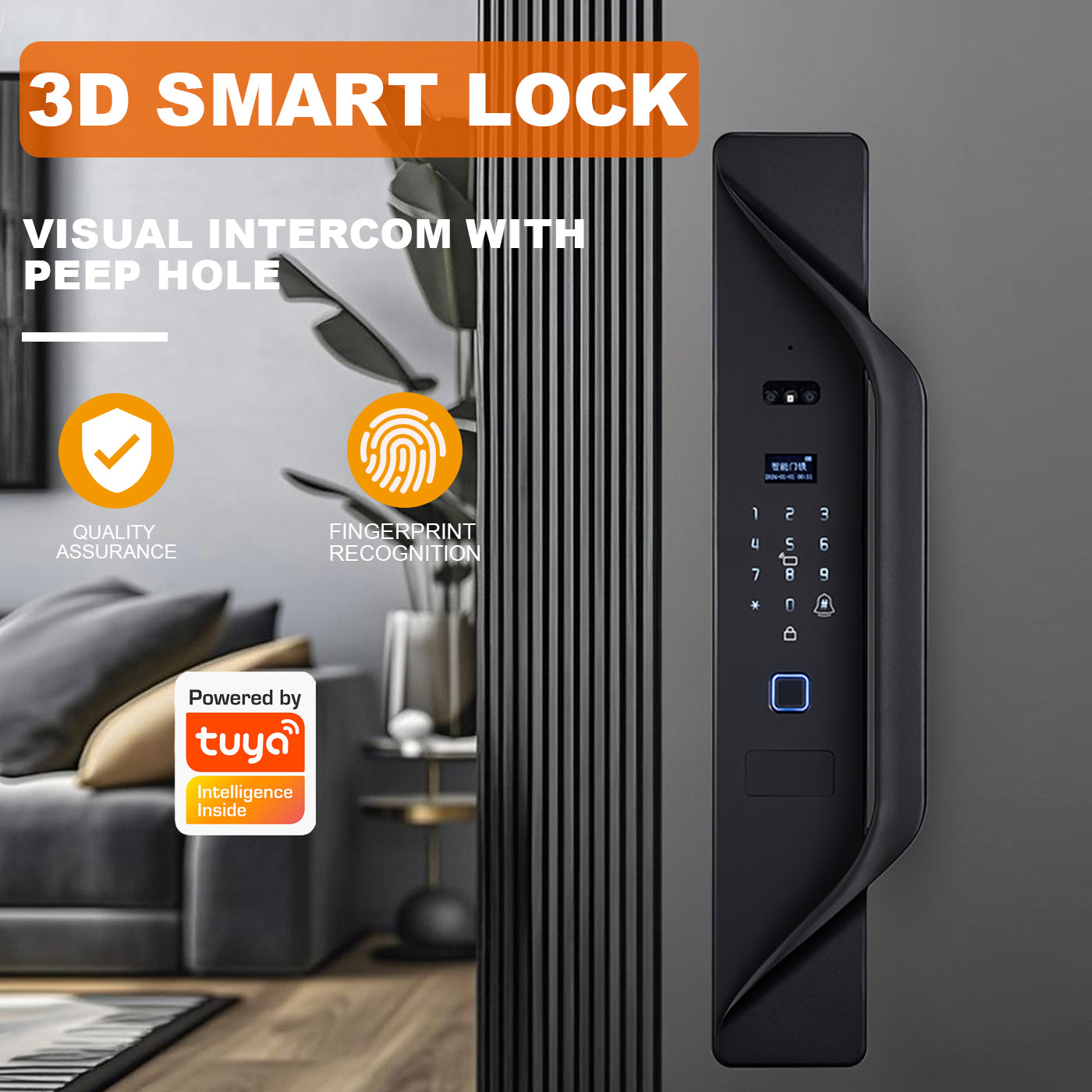 Tuya Digital Door Lock, multi-language smart lock, 3D security video intercom, keyless WiFi smart lock with fingerprint and face recognition
